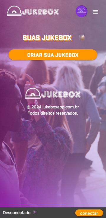 Pelo menu principal acesse o link SUAS JUKEBOX, clique em conectar ao Spotify, você será levado para uma tela onde deverá dar a permissão ao aplicativo Jukebox de se conectar a sua conta.